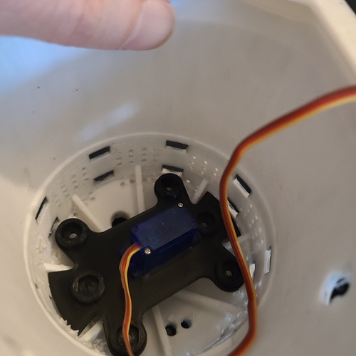 Download and print the upper servo shaft from the link below. Glue the shaft into the hole on the bottom of the dome with small amount of hot glue.
