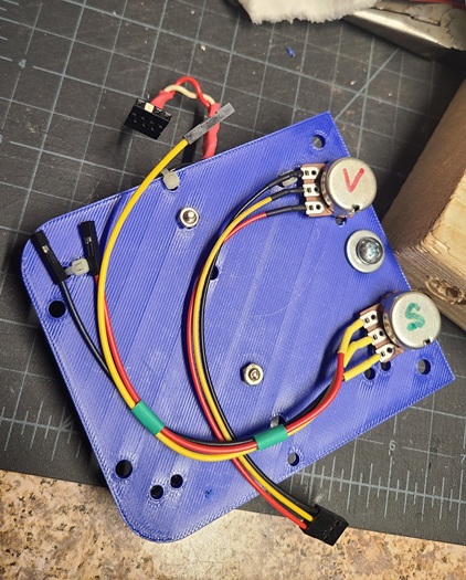 Another typical MacGyver moment during DroidCon 2025, I temporarily re-mounted the switch in one of the hemisphere holes using a paperclip and a circle cut from expired giftcard.