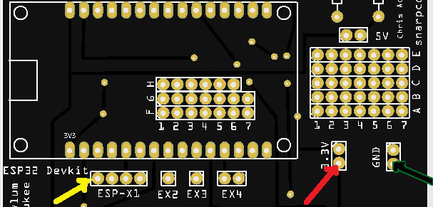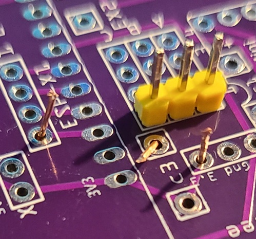 On the purple and yellow PC boards, solder a 3 pin header covering 1A, 1B and 1C.